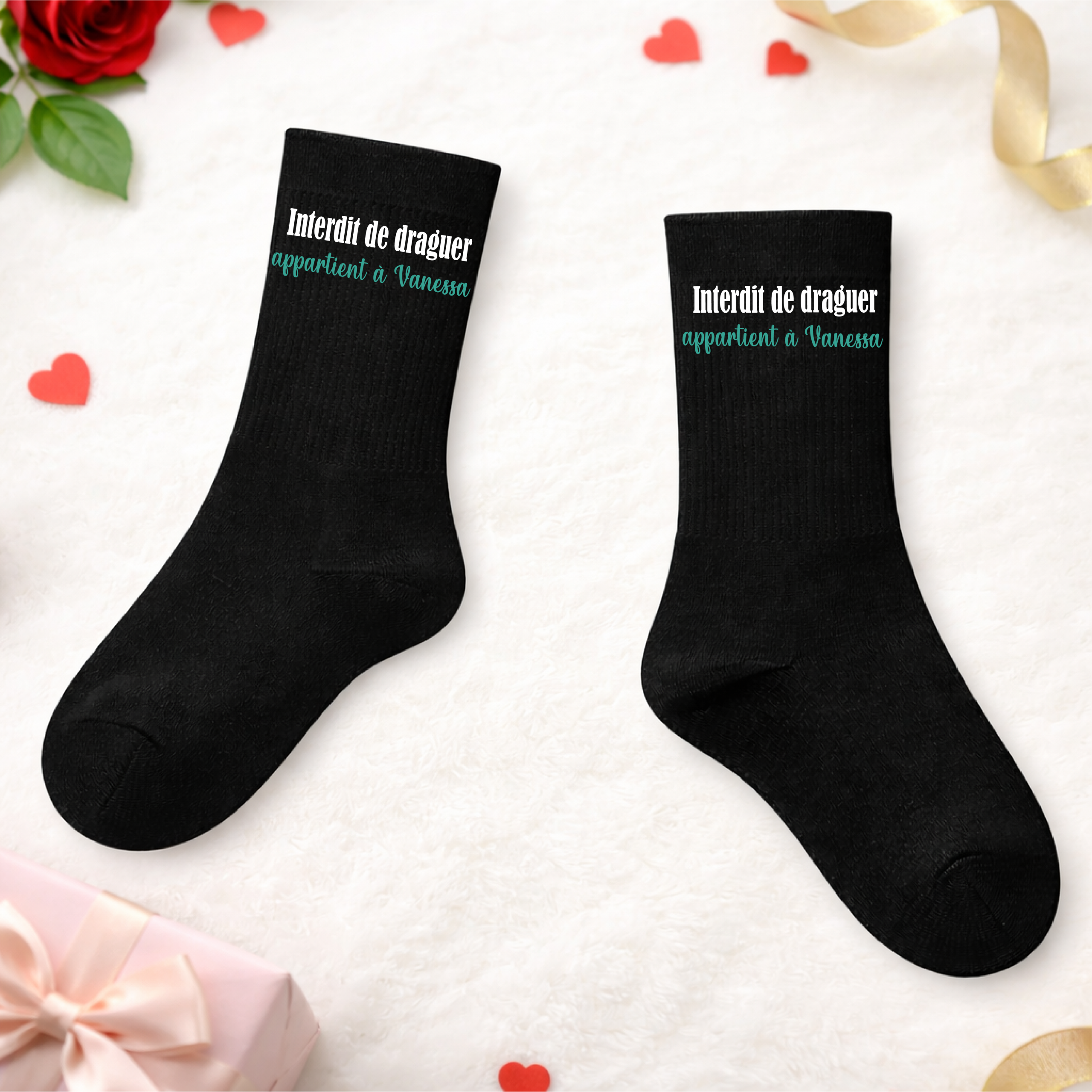 Ces chaussettes personnalisées sont idéales pour afficher votre relation avec humour et style 😄
