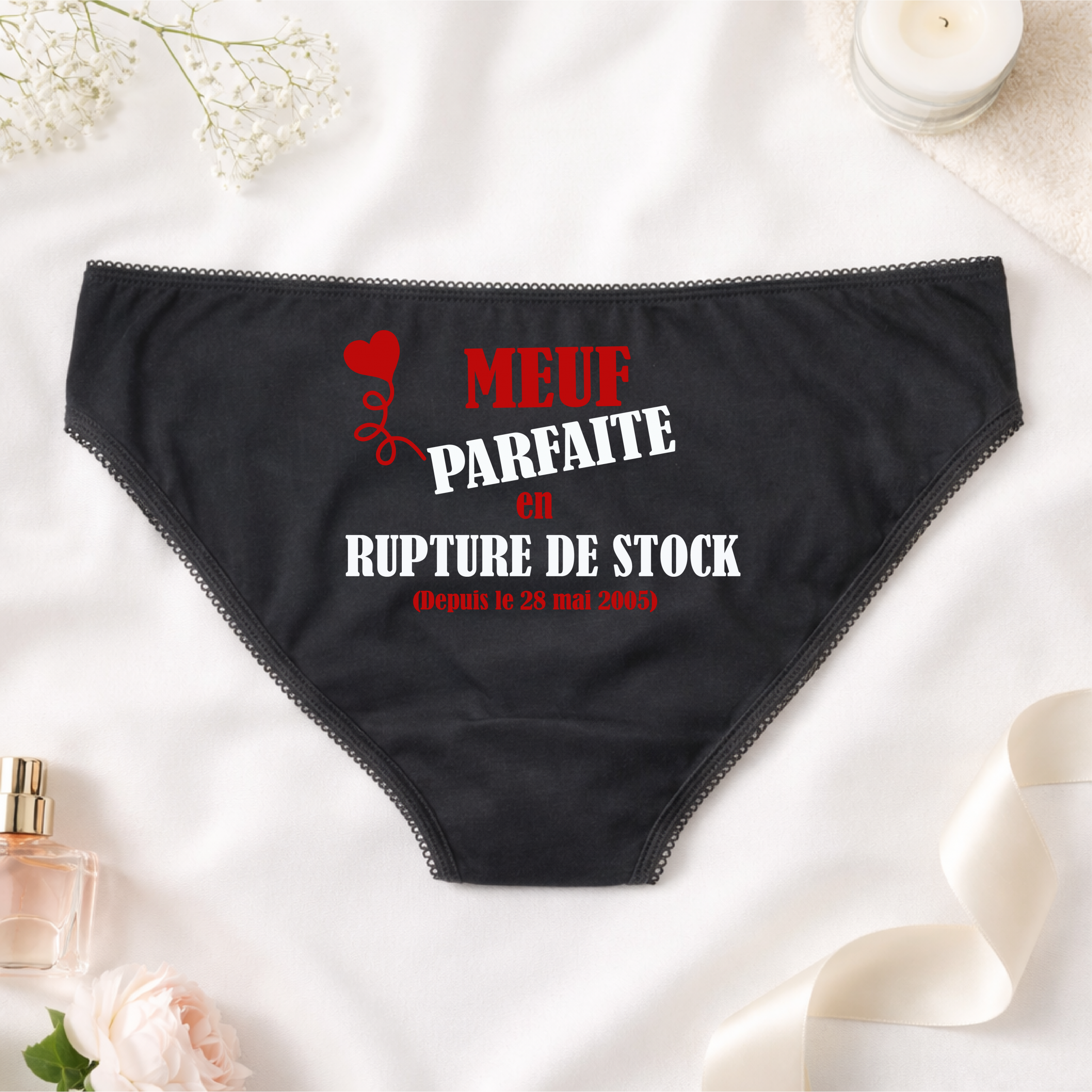 culotte femme “Meuf parfaite en rupture de stock” à date personnalisable 😄