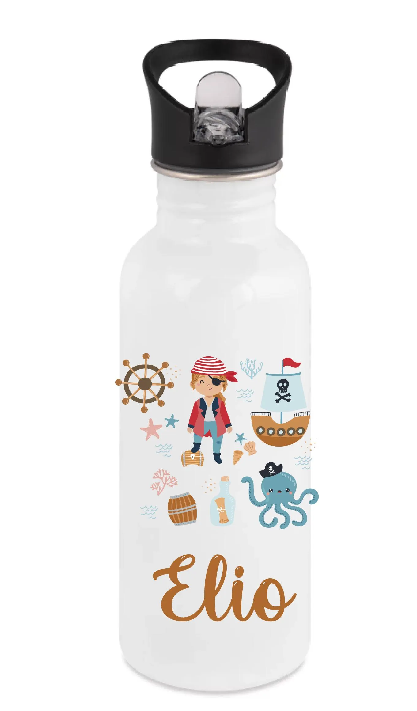 Gourde paille 600 ml personnalisée pirate – Prénom enfant – Indispensable rentrée scolaire