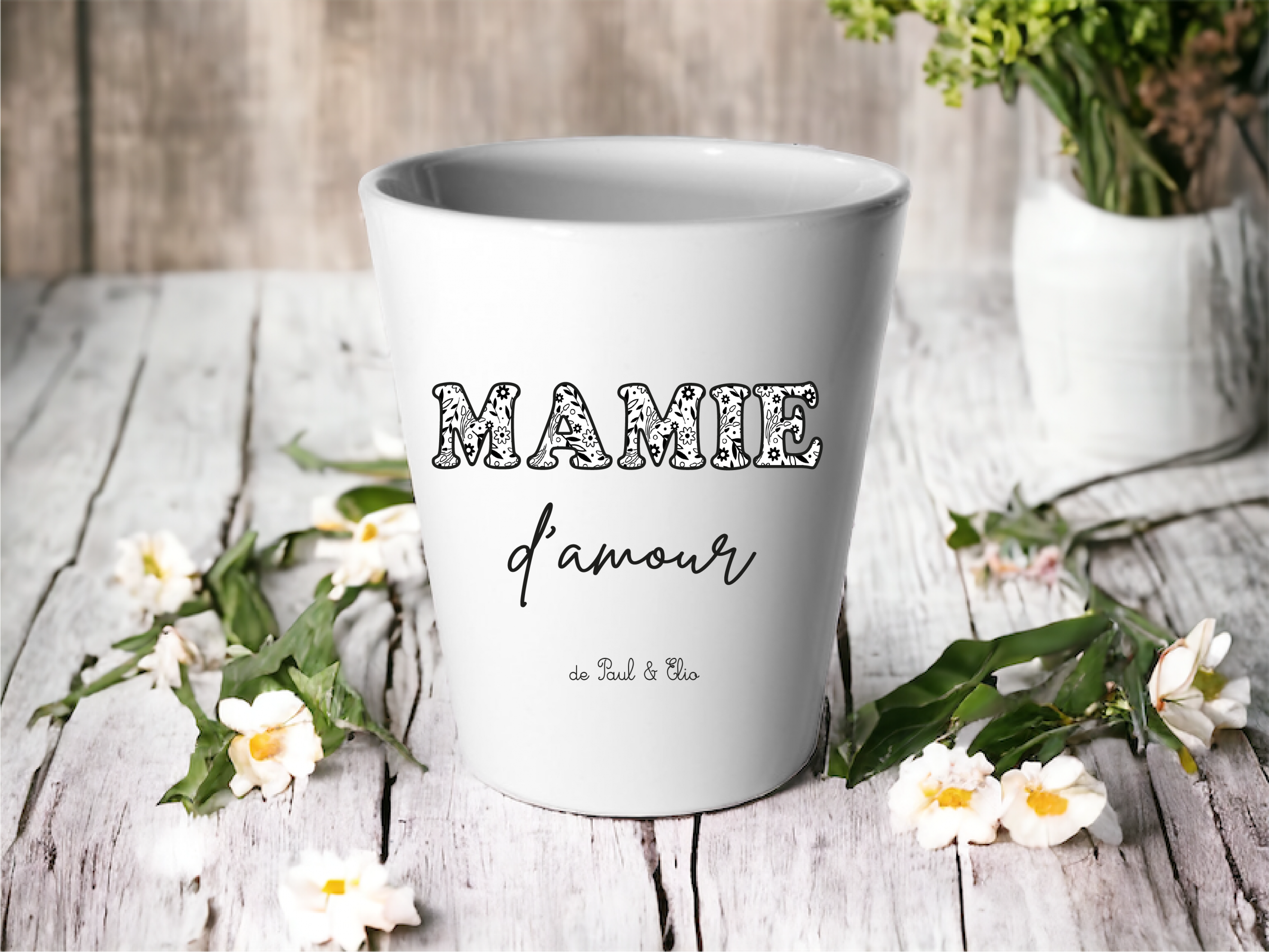 Ce pot personnalisé “Mamie d’amour” est une attention pleine de douceur qui fera plaisir à coup sûr.