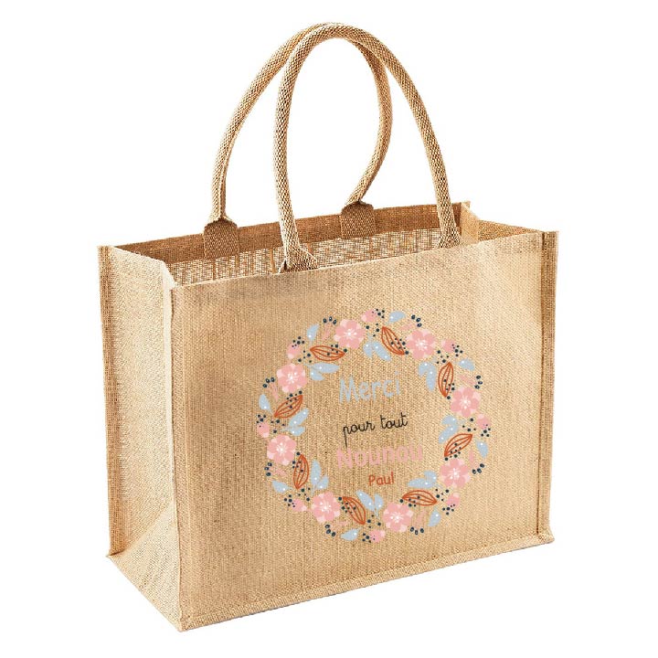 Sac cabas en toile de jute naturelle et coton