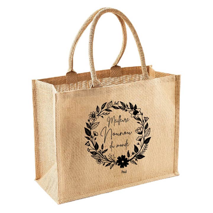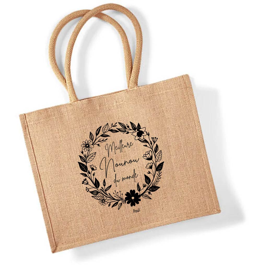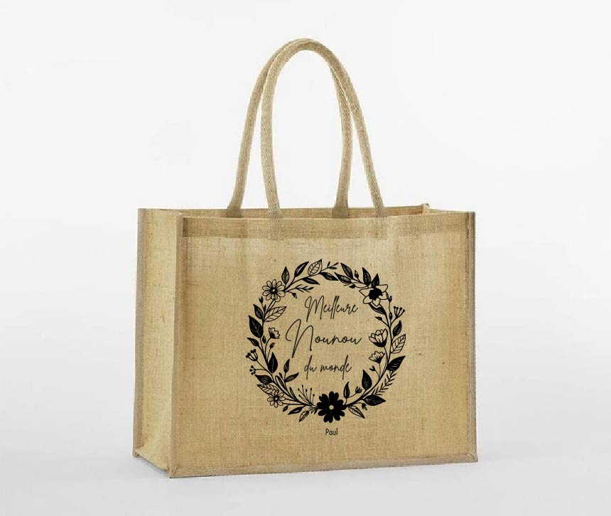 Offrez un joli souvenir à la nounou avec ce sac en jute “Meilleure Nounou du monde” 🌸