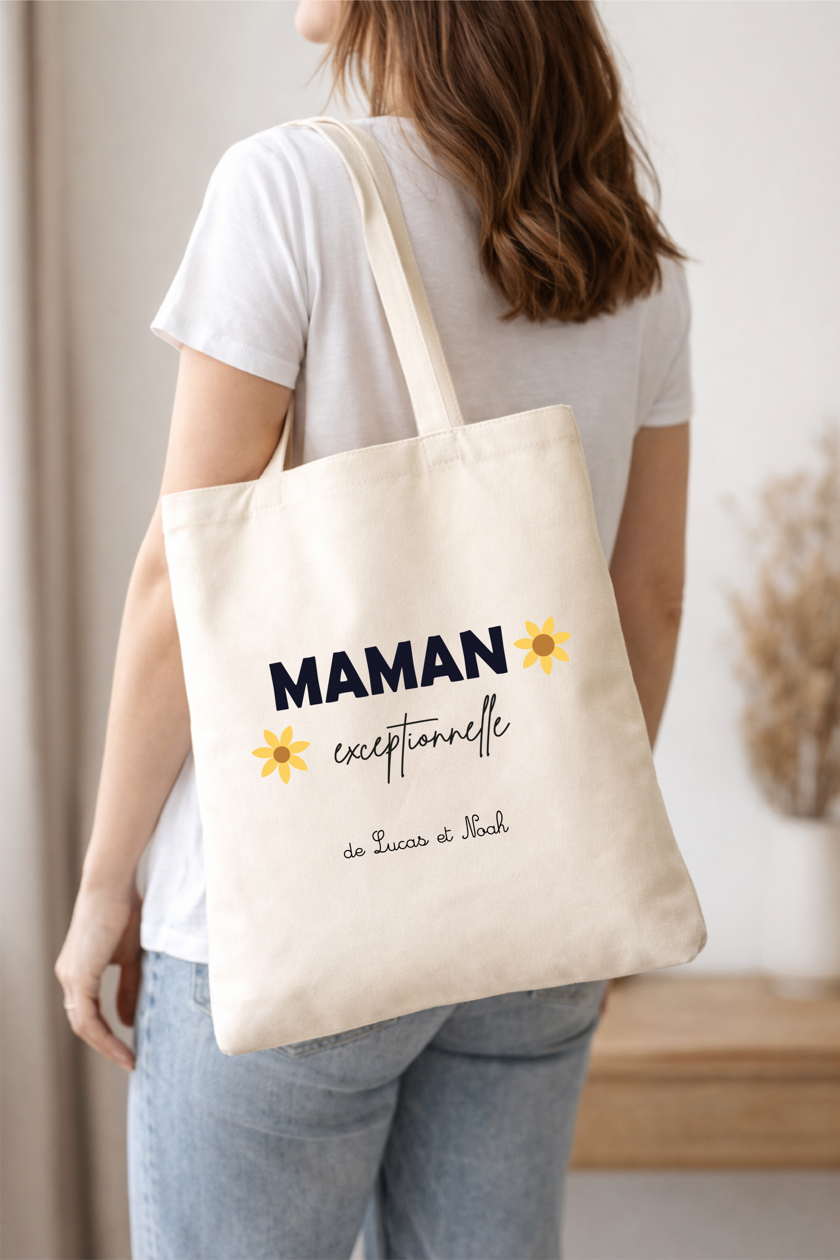 Tote bag maman exceptionnelle personnalisé, sac maman prénom enfant, cadeau fête des mères maman, sac coton personnalisé maman