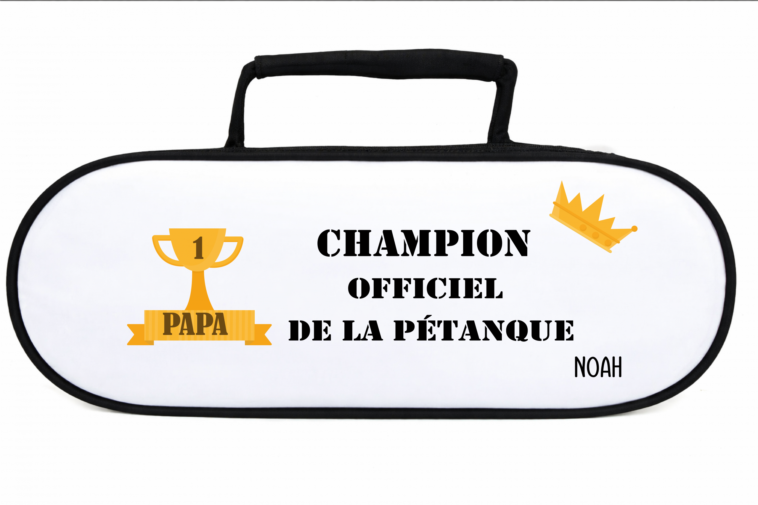 Avec son message “Champion officiel de la pétanque”, cette trousse personnalisée est parfaite pour accompagner papa lors de ses parties entre amis.